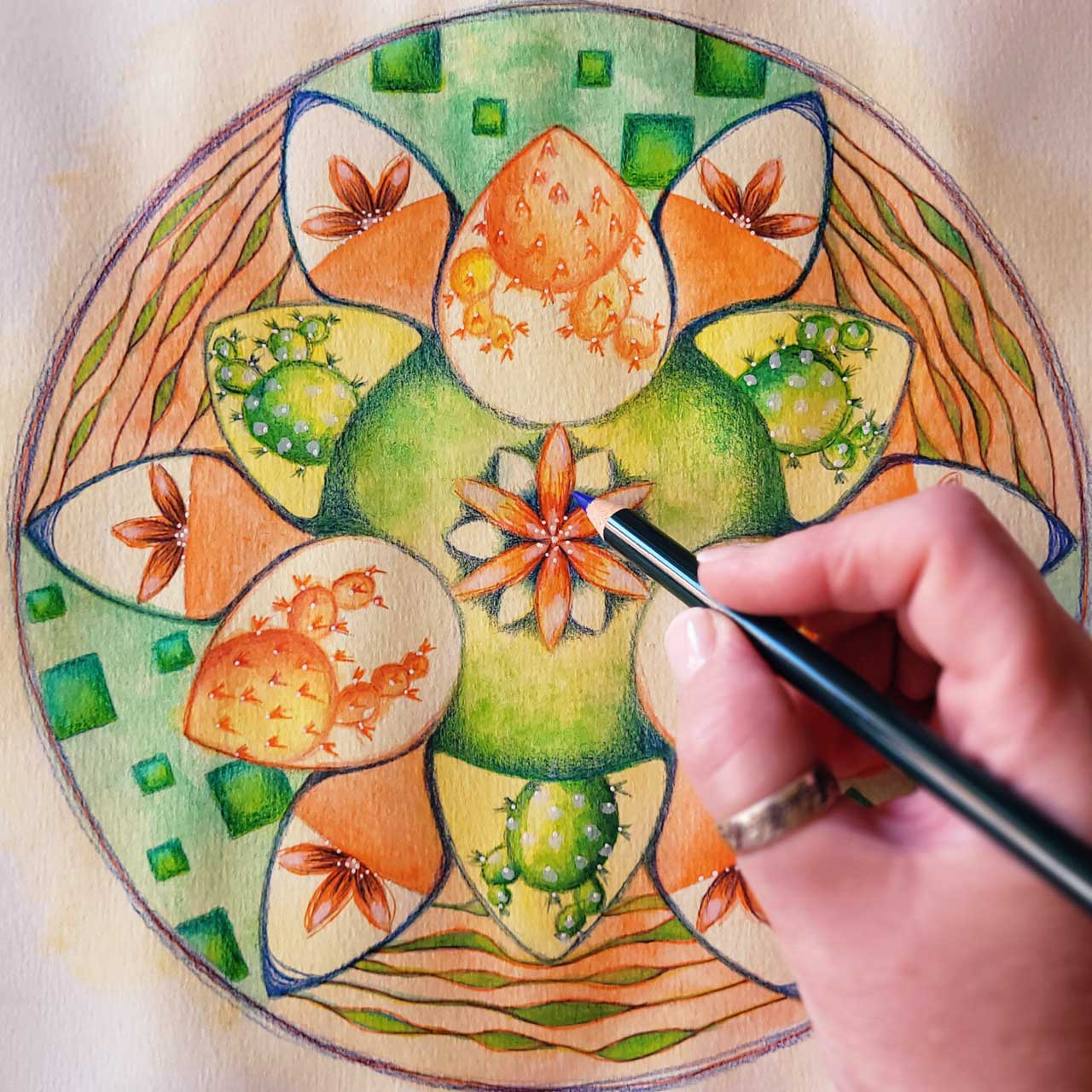 Una de las cosas que más disfruto es compartir el proceso creativo de mis Mandalas. Sé que esos “pensamientos en voz alta” te ayudan a entender el porqué y el cómo de cada una de las decisiones que voy tomando. Empecé a compartir este Mandala en un vivo para luego registrar el avance en los […]